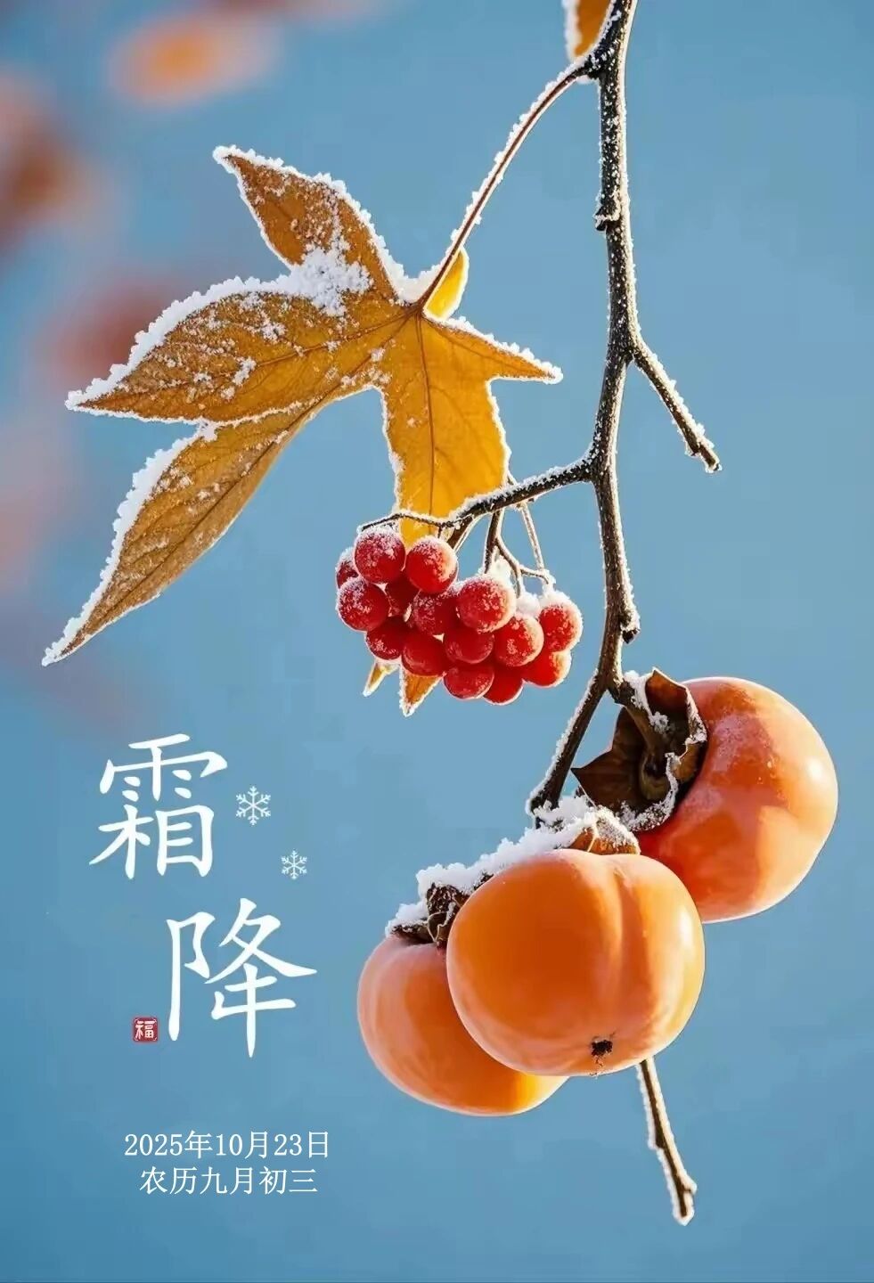 霜降,秋的终章。露凝为霜,气肃而凝。草木摇落,蛰虫咸俯。民谚云“霜降杀百草”,随着霜降的到来,植物渐渐失去生机,作物、草木开始泛黄、落叶,进入了“千树扫作一番黄”的晚秋时节。