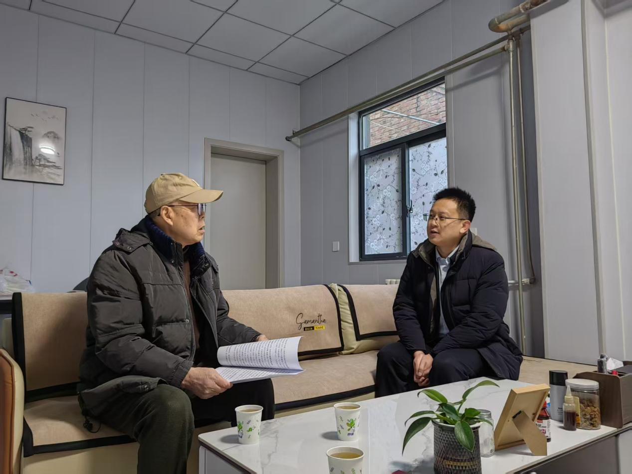 每到一处,研究室主任唐新伍一行都与他们促膝交谈、共叙家常,详细询问身体健康状况、家庭生活情况以及实际所需,细心叮嘱大家做好防寒保暖与健康防护,始终保持乐观豁达的良好心态。随后,向老干部们简要介绍单位过去一年工作推进情况与取得的显著成效。这些成绩的取得,离不开老干部们打下的坚实基础、作出的重要贡献,希望大家一如既往关注支持全市党史方志事业发展,多提宝贵意见建议,齐心协力将党史方志各项工作做得更好。