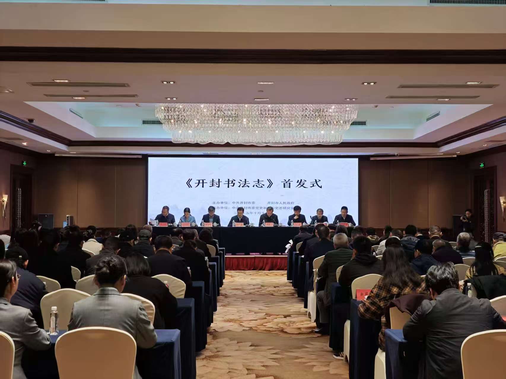 金秋时节,菊香满城。10月19日上午,《开封书法志》首发式在开封顺利举行。中共河南省委党史和地方史志研究室副主任高东海,中共开封市委常委、市委秘书长张松文,开封市人大常委会副主任穆宏地,开封市人民政府副市长刘震,开封市政协副主席邢广华,中共河南省委党史和地方史志研究室第六研究处处长赵立伟,中原大地传媒股份有限公司总编辑董中山,中州古籍出版社总编辑卢欣欣,开封市人民政府副秘书长陈学辉,中共开封市委党史和地方史志研究室主任唐新伍出席首发式。参加首发式的还有市委宣传部原二级巡视员、开封市书协名誉主席、《开封书法志》总编纂程崇正,开封市书协名誉主席、《开封书法志》副总编纂赵鉴钺,开封部分市直单位有关负责人,书法界代表,开封市地方史志学会有关专家,各高校图书馆负责人,开封市委党史和地方史志研究室工作人员,新闻媒体记者等。首发式由市委副秘书长吴大明主持。