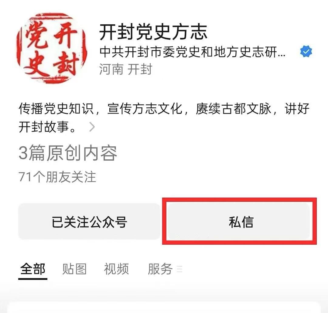 (四)投稿方式:敬请关注“开封党史方志”公众号,在公众号后台留言即可(需注明对应上联序号),详细操作见文章结尾处。